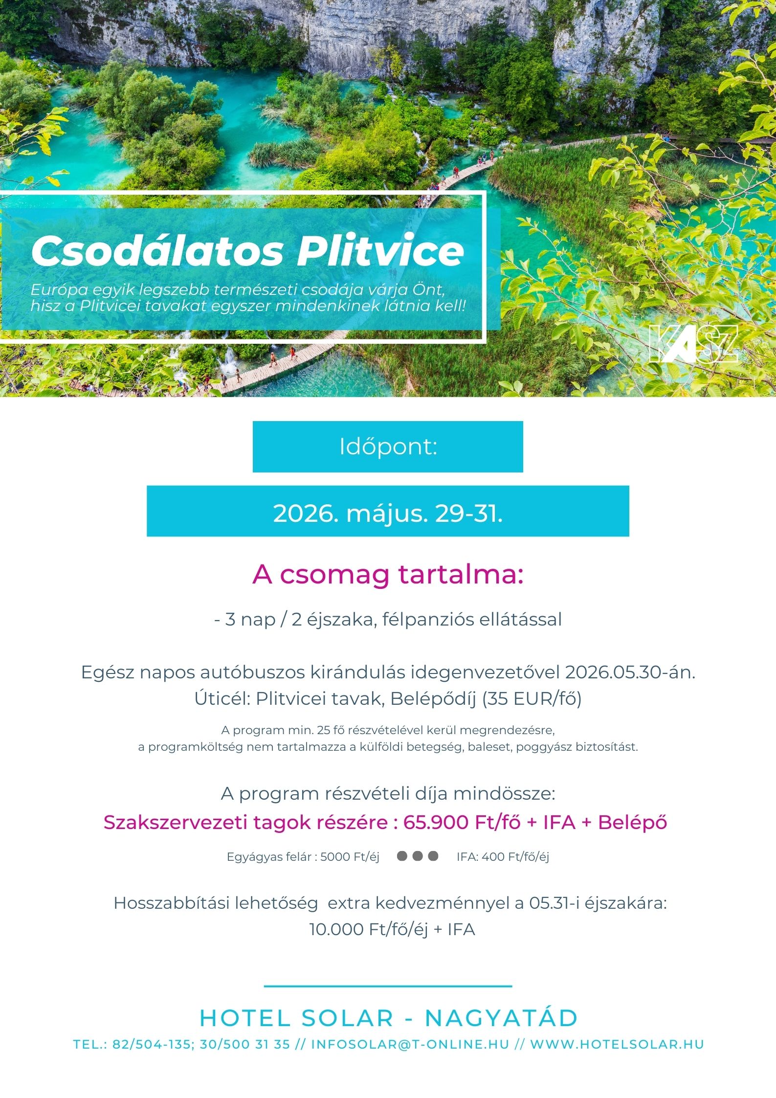 Kedvezmény igénybevételének feltétele: jegypénztárnál KASZ tagság igazolása, tagsági kártya felmutatása.